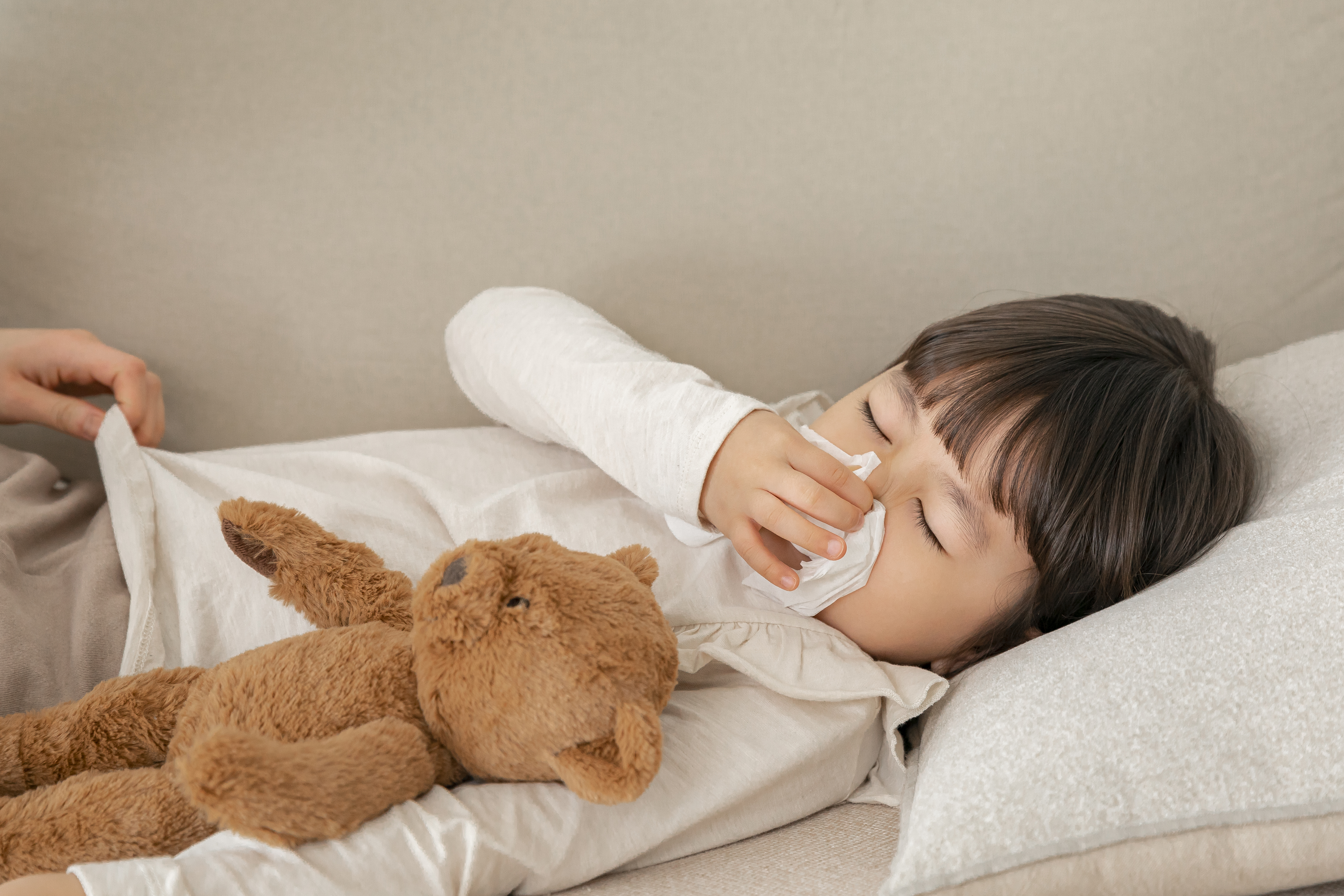 기침을 하거나 콧물이 흐르거나, 평소보다 수면 시간이 줄고 보채는 경우라면
